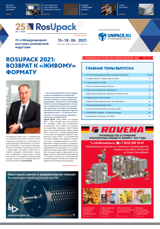 We will also publish an internet version of the Special Issue on www.unipack.ru, which is visited by 200000 specialists monthly.