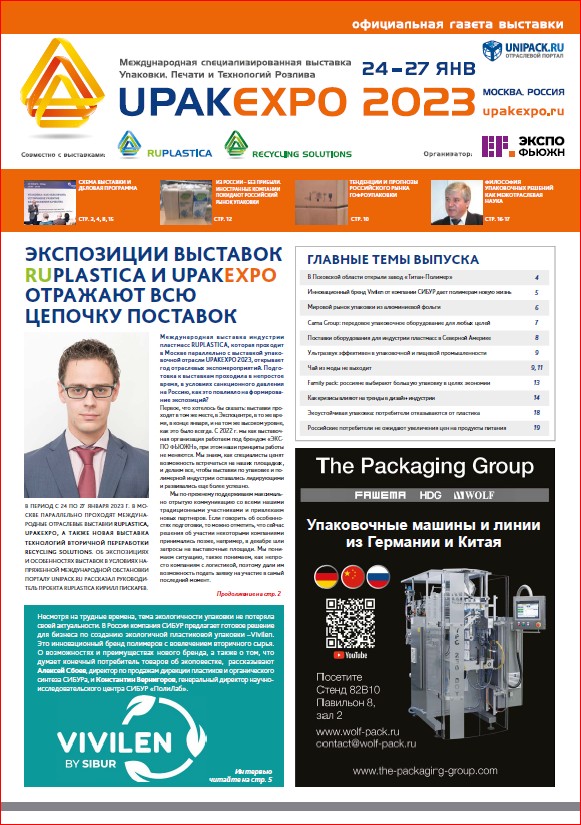Unipack.Ru, in agreement with the exhibition organisers, is publishing Official Exhibition Newspapers dedicated to the most popular and highly visited Food and Packaging Exhibitions in Russia: